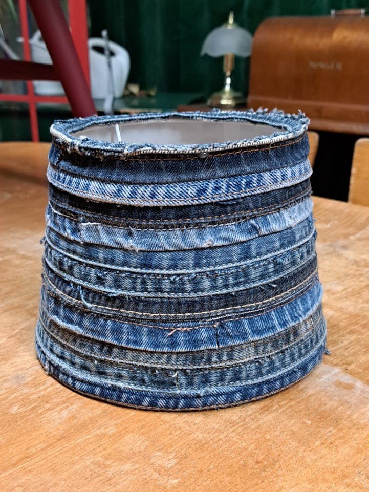 Erittäin kaunismuotoinen pöytälamppu ja farkkuvarjostin. Sisäkäyttöön.